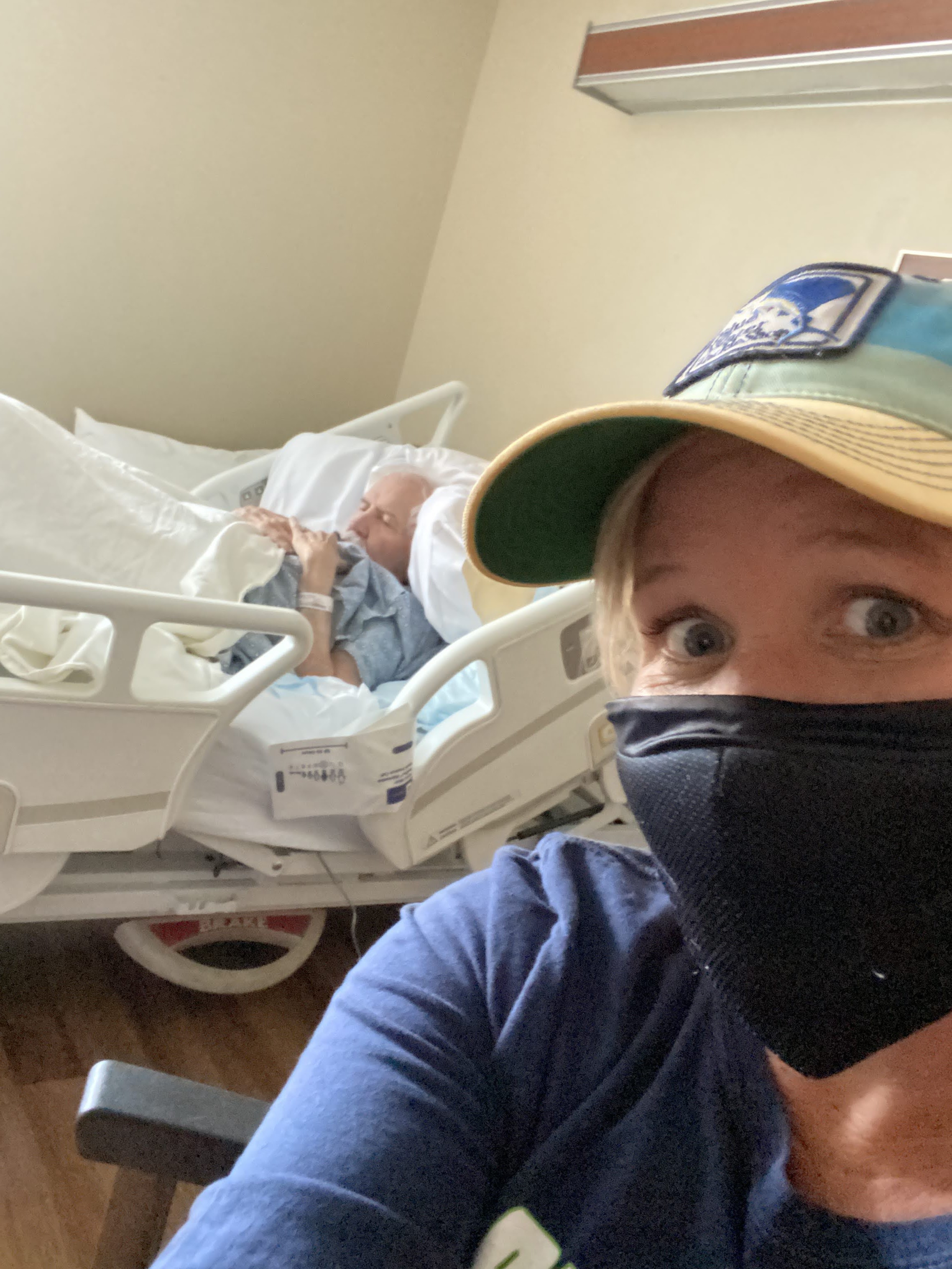 No one enjoys taking photos during a difficult time. It isn’t fun to experience the first time around, so you don’t relish going down a visual memory lane later. I feel anxious just seeing the bed, the blood pressure cuff, the bland wall, and my dad lying under a thin blanket in a snap off gown like the one I wore when my children were born. I have this one because I like sending selfies to my teenage kids instead of tediously texting an update: “I’m with Pappaw at the hospital. It’s fine. He’s sleeping. Covid regulations in effect so I have to wear a mask.” Not quite 1000 words, but they get the picture. Pun intended.